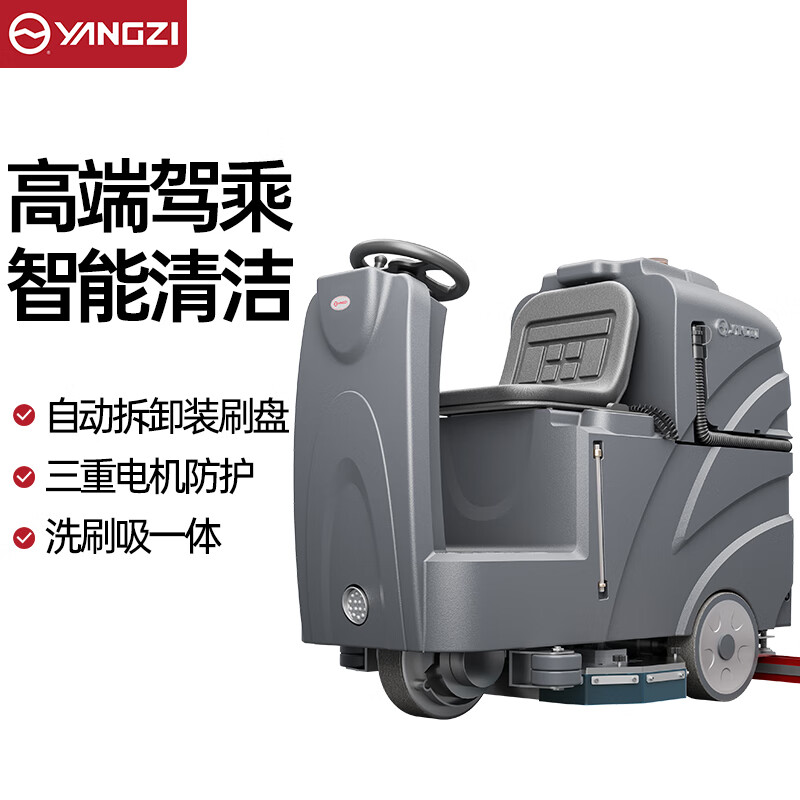 揚子洗地機YZ-X8,人性化操控設計,操作簡單方便,洗擦吸三合一/雙刷盤雙出水/扒頭自動升降/一鍵替換/三重電機防護/車載充電器